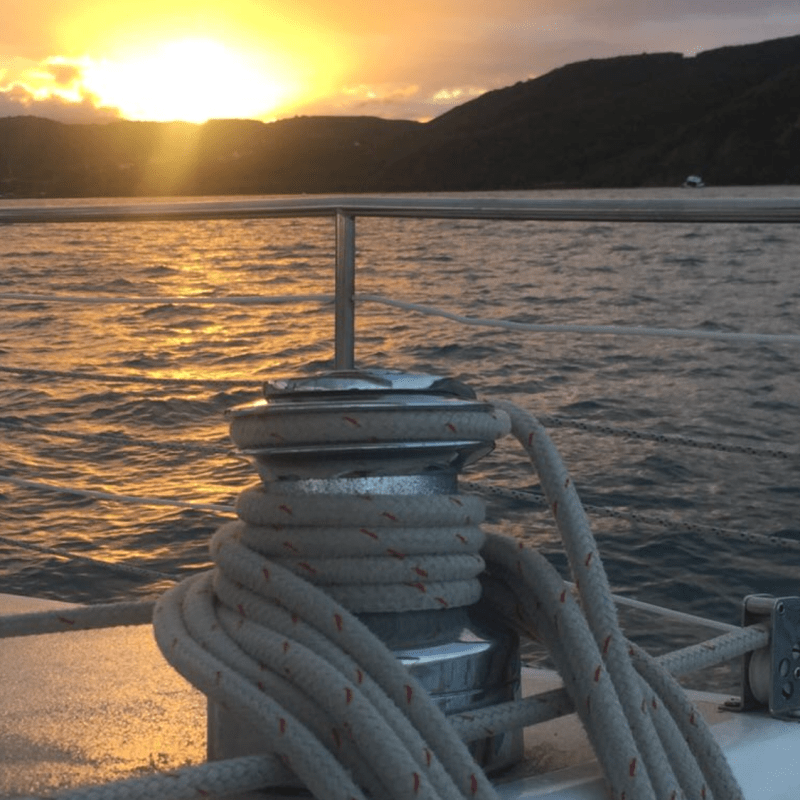 Embarquese con nosotros en una hermosa vela en busca de una impresionante puesta de sol en el mar del Caribe en catamarán. Relájese y deje que la brisa del Caribe se lleve sus preocupaciones mientras disfruta de buena música o simplemente del sonido del barco navegando entre las olas. Navegamos en las tranquilas y protegidas aguas de la Bahía de Fajardo. Los huéspedes disfrutarán de las vistas de las Islas Vírgenes españolas, las vistas de las imponentes montañas de la selva tropical de El Yunque, el faro de Cabo San Juan y, a lo lejos, las islas de Vieques, Culebra y los cayos de la costa noreste de Puerto Rico.