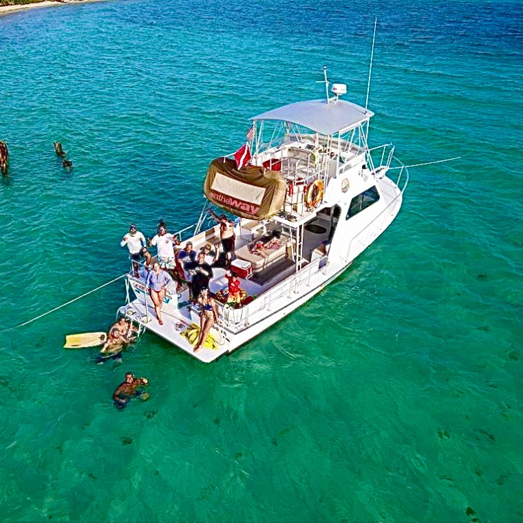 Amenidades a bordo: Cabinas con sombra, Asientos acolchados, Baño privado , Sistema de sonido de primera clase, Acceso fácil a la escalera para buceo y natación, Alfombra flotante y ducha con agua fresca.
